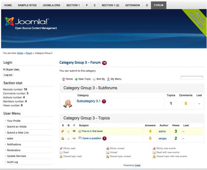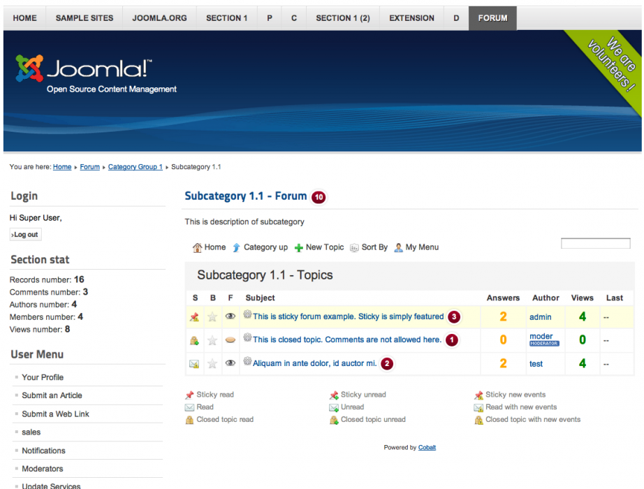 Forum pack for cobalt is the great way quickly create forum on your site. It has great features.