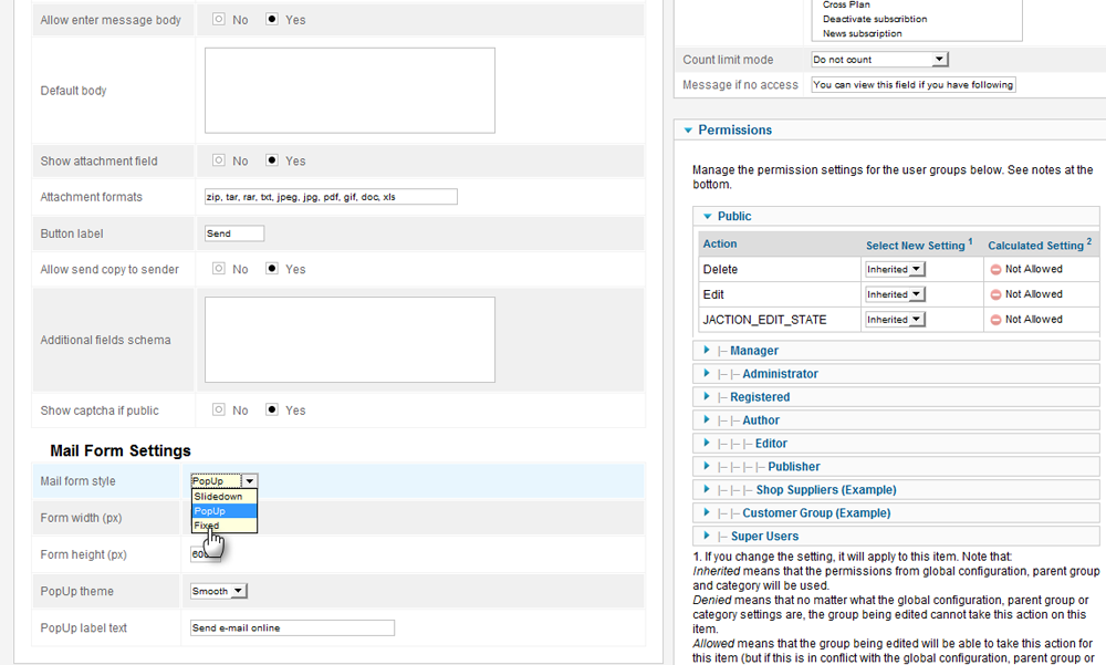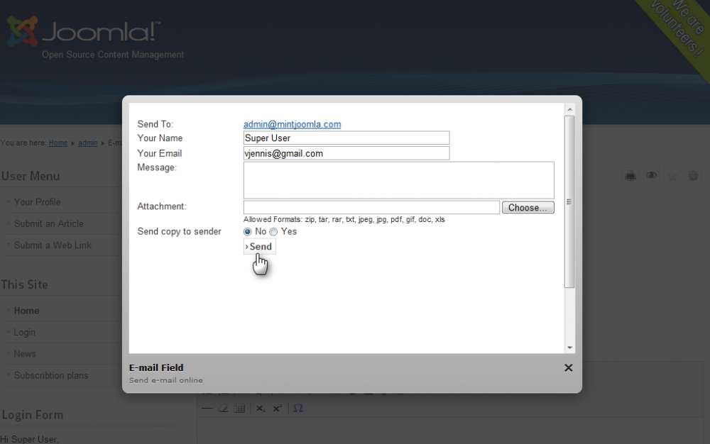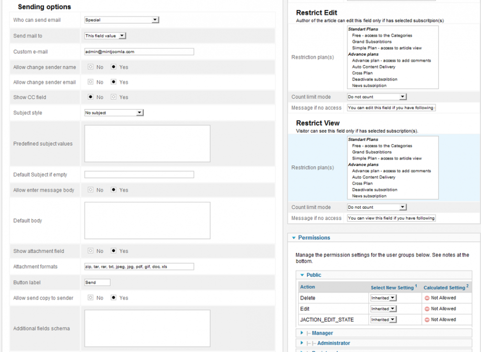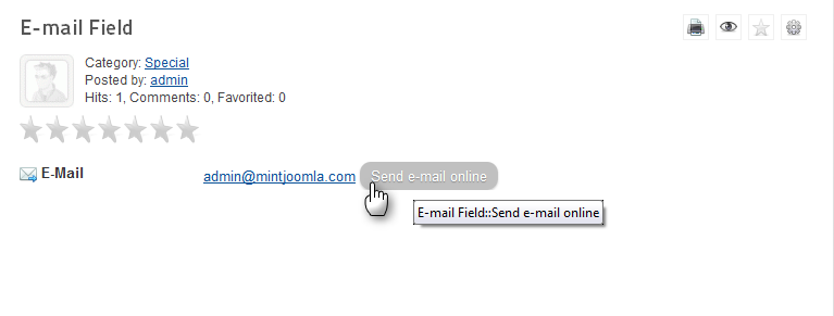 This field is very flexible and can be perfectly used just to enter and show email or/and send mails to entered email, or article author's email or custom email.