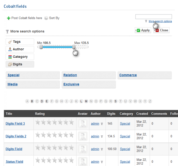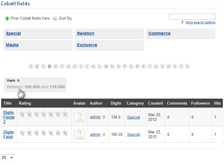 This field is for entering and displaying only the numeric values. With this field you can enter any numeric values. The main advantage of this field - is the ability to create a filter for a range of values.