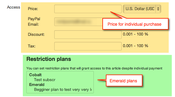 This field can sell access to the article. It is multivendor and other users may sell access to their article on your site. With PayPal adaptive payments turned on, you will get comission of every sale.